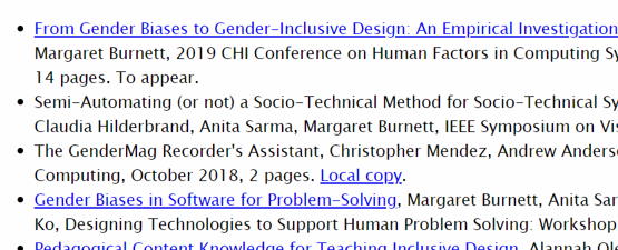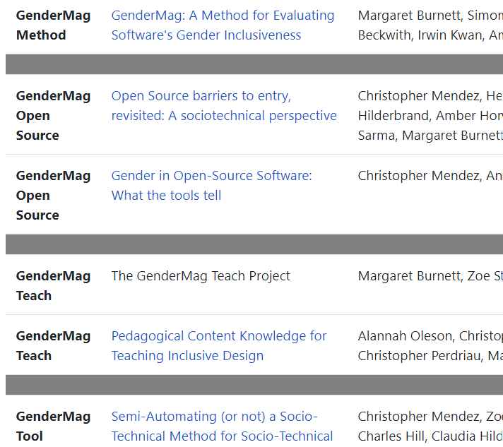 Evidence: A Principled Evaluation for a Principled Idea Garden, Will Jernigan, Amber Horvath, Michael Lee, Margaret Burnett, Taylor Cuilty, Sandeep Kuttal, Anicia Peters, Irwin Kwan, Faezeh Bahmani, Amy Ko, IEEE Symposium on Visual Languages and Human-Centric Computing, October 2015, 235-243.